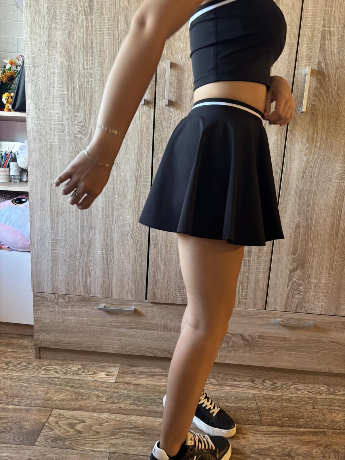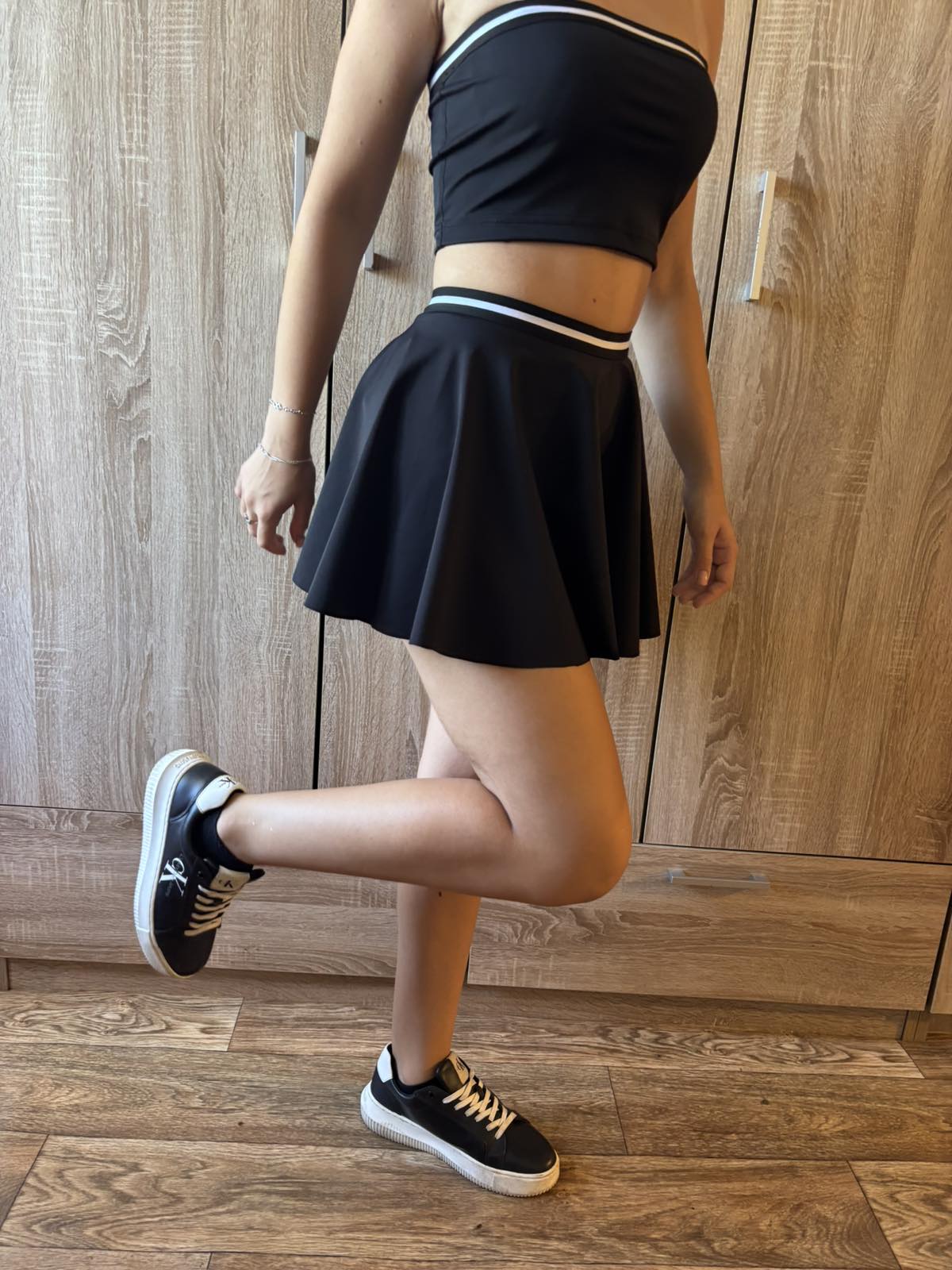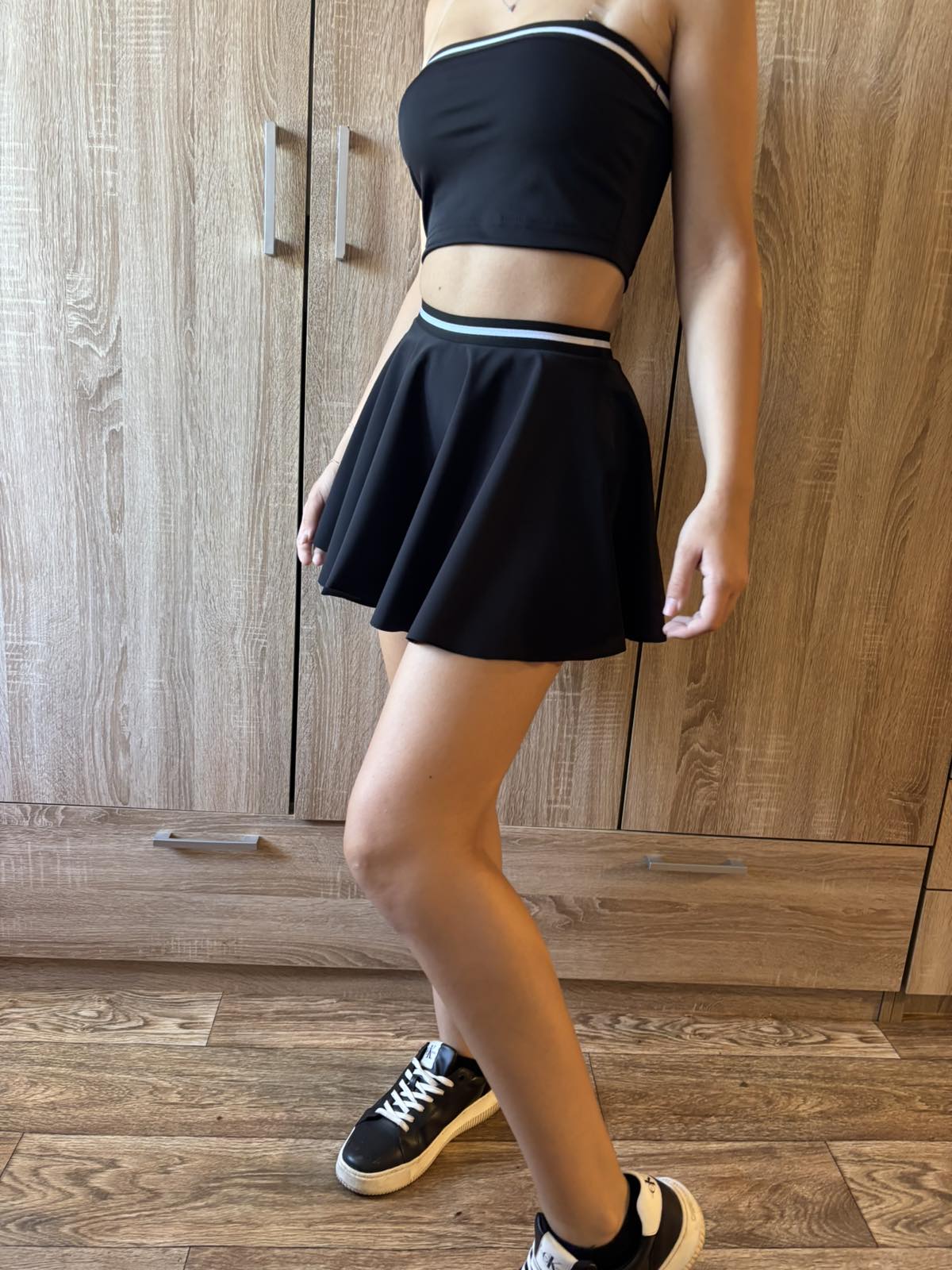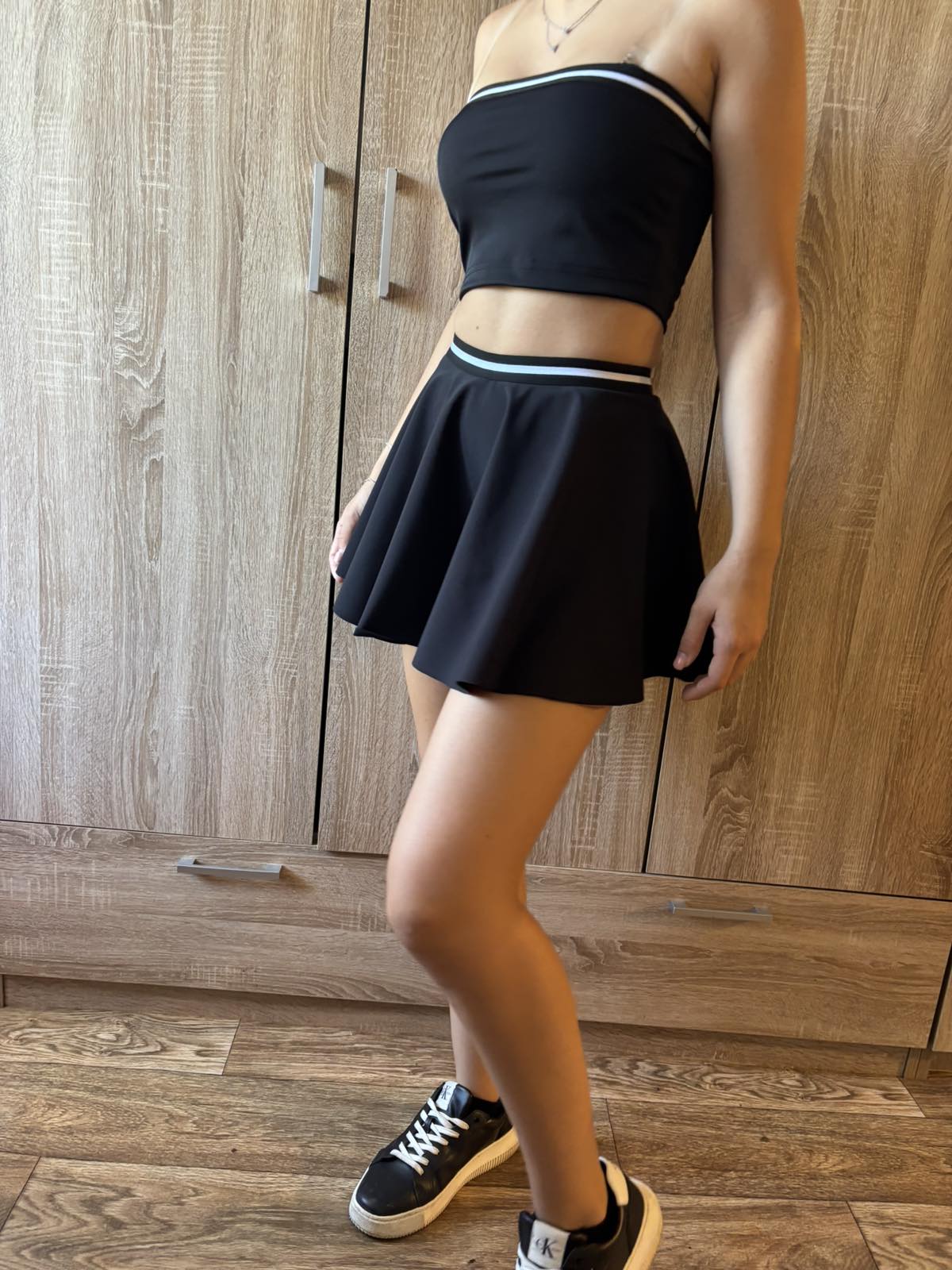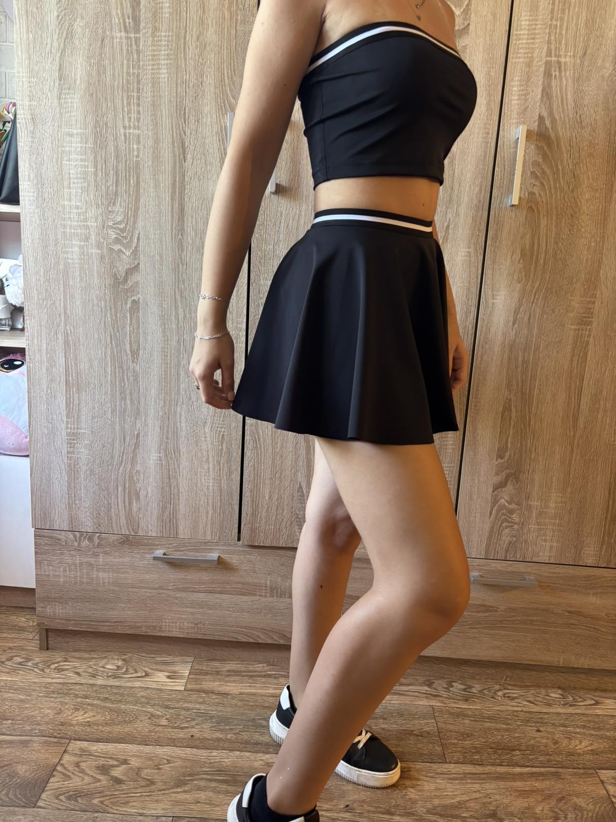 късо клинче с пола слънце и бюстие , бюстието моге да бъде и като топ или блузка,