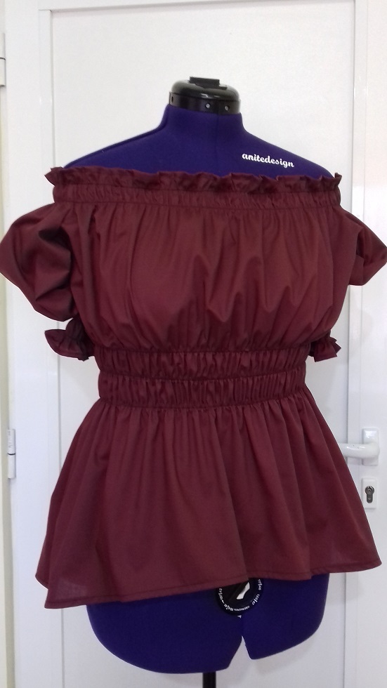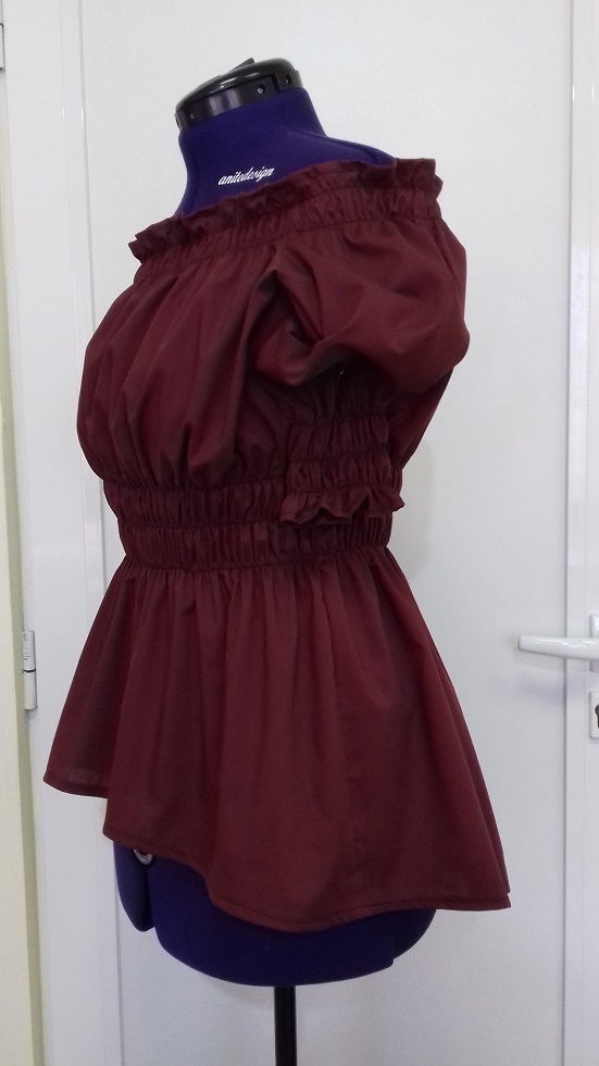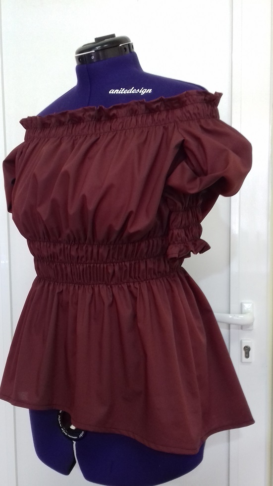 туника на ластици в бордо цвят, изработена от 100% памук, ластик .