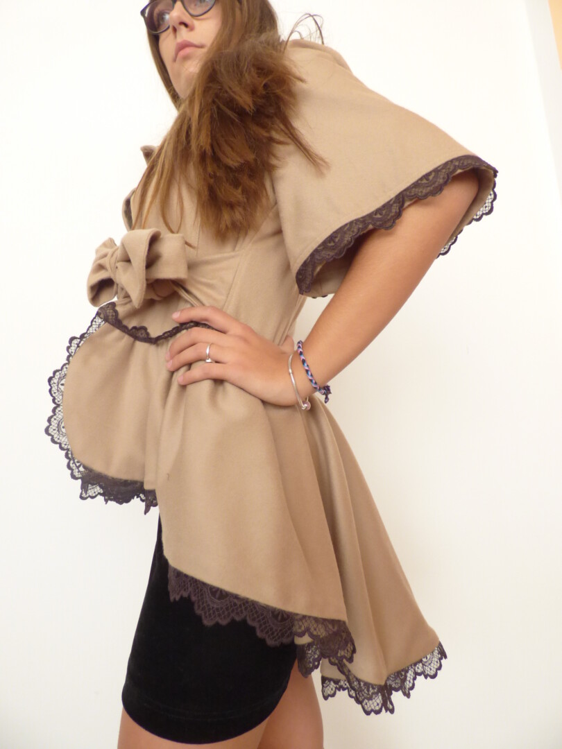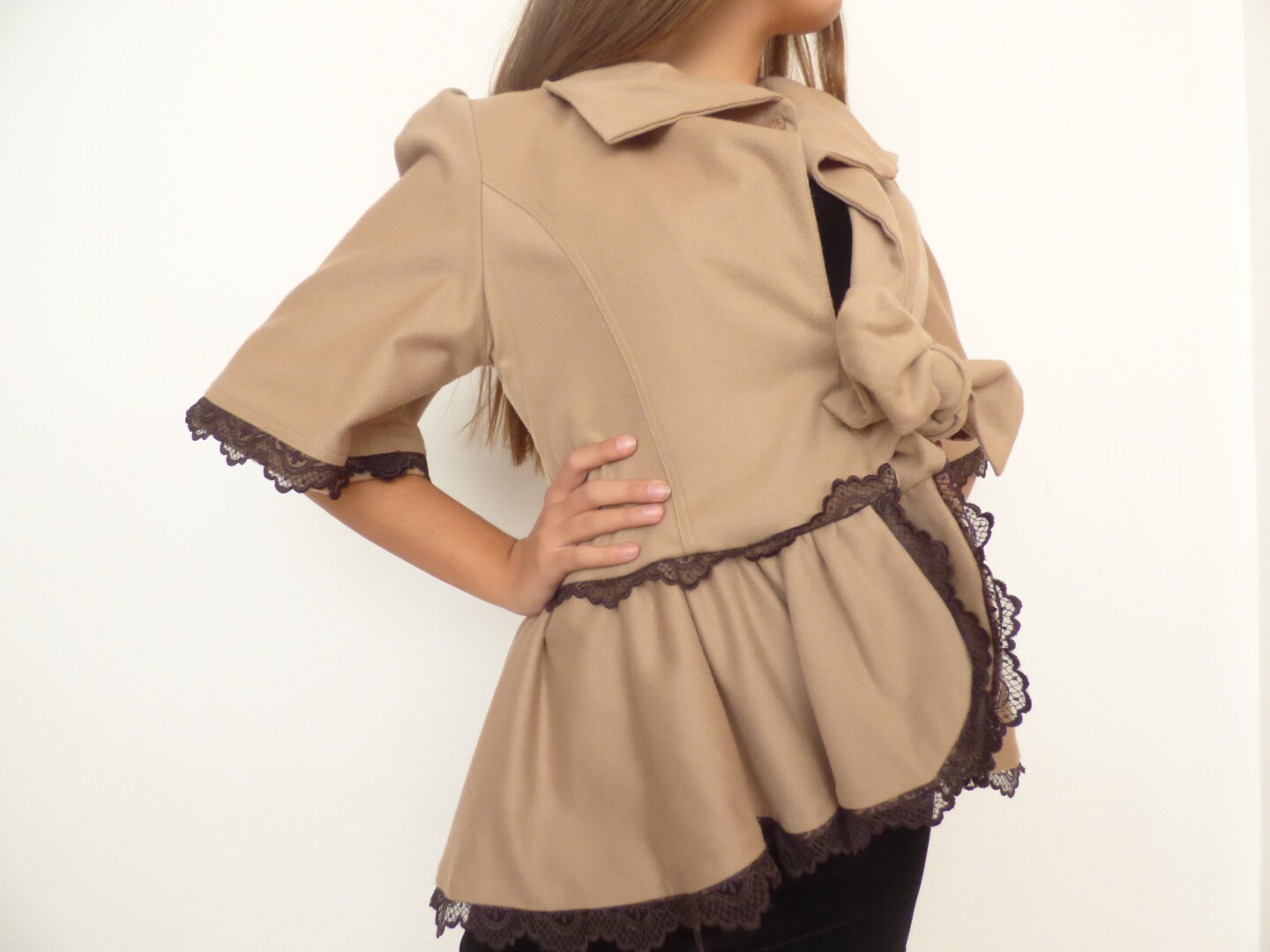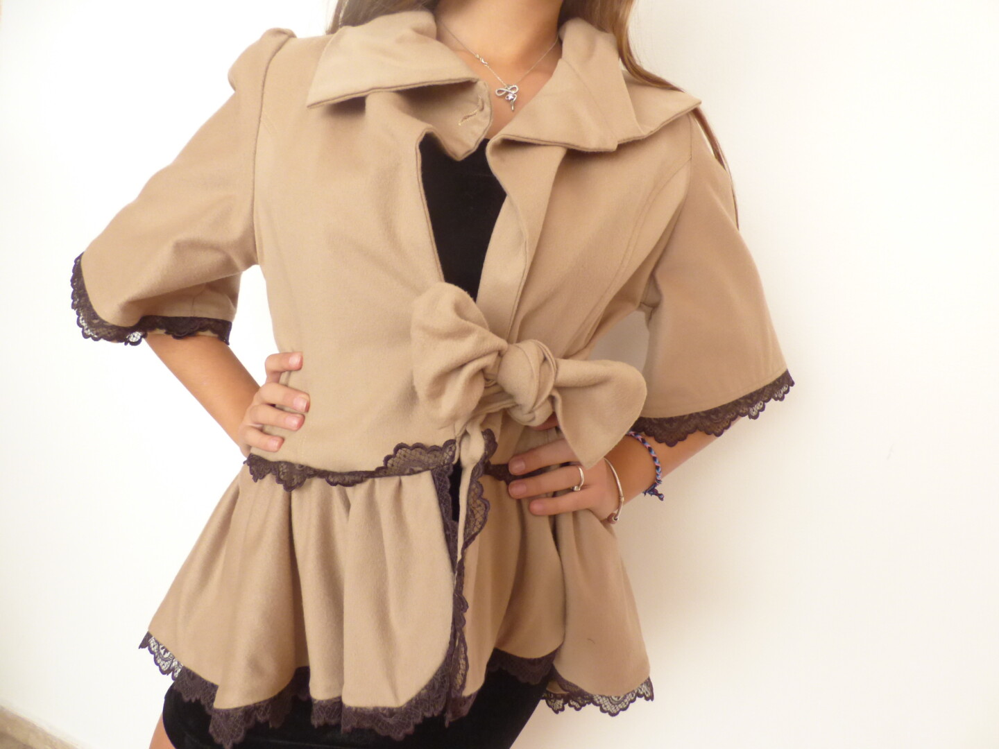 Стилно и уникално дамско палто с дантела и седем осми ръкави, изработено от кашмир , дантела и хастар.