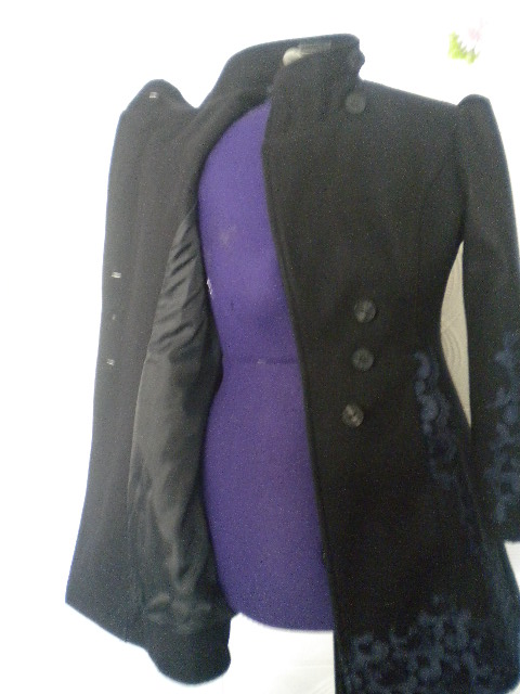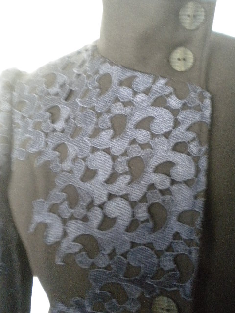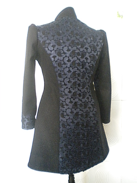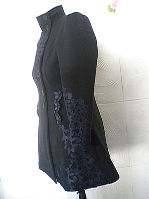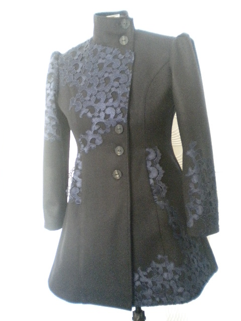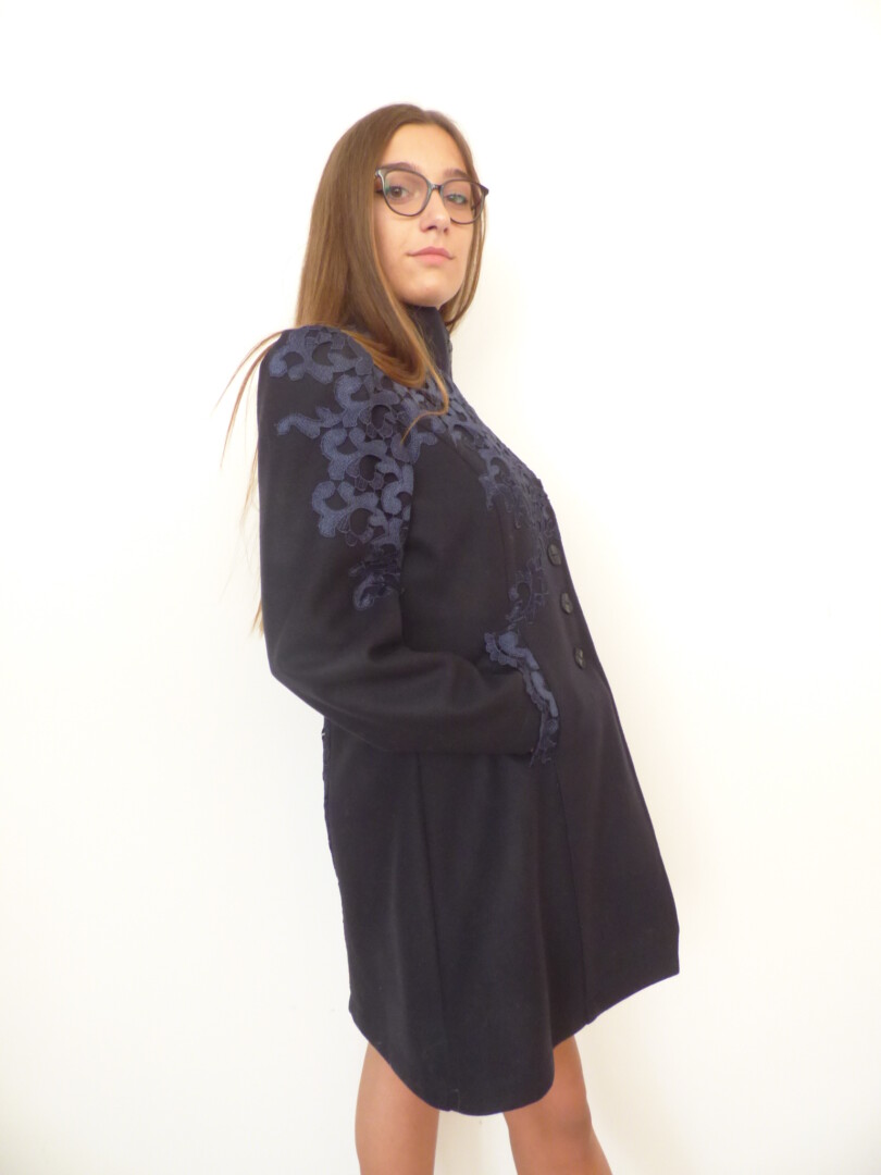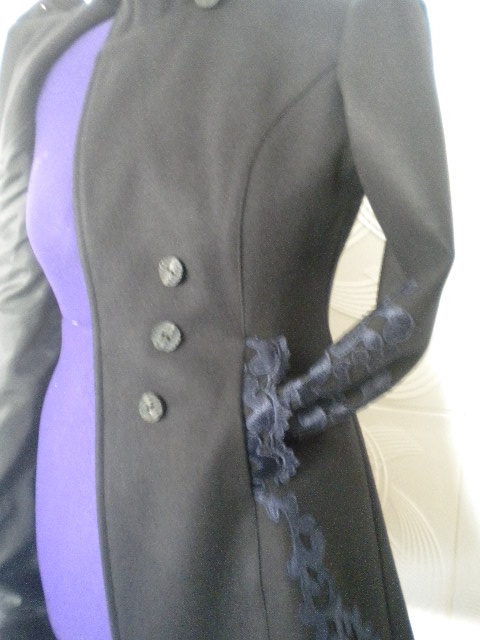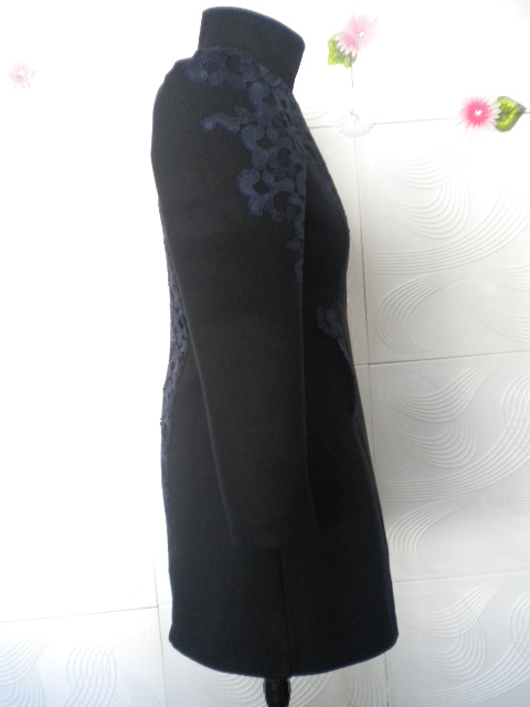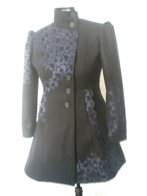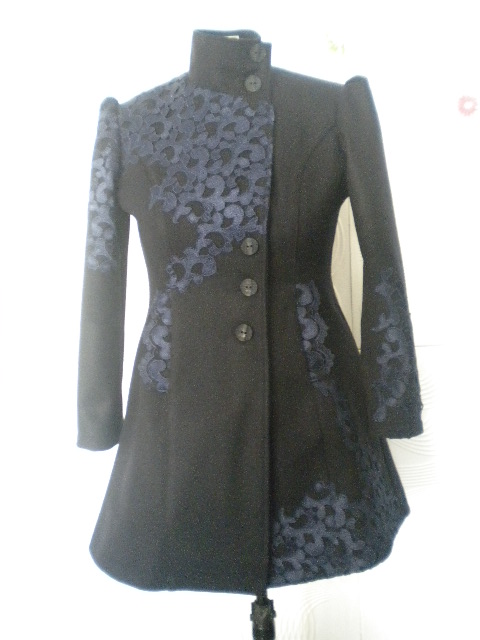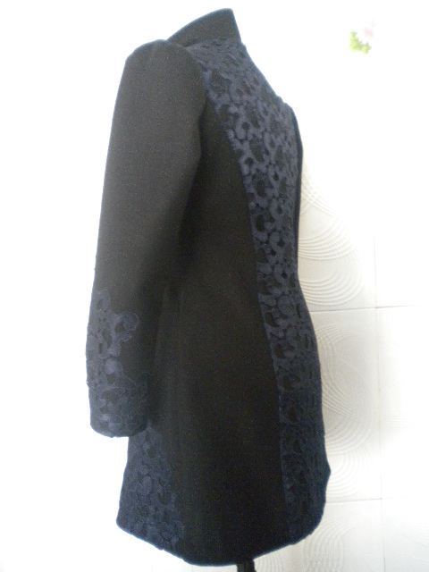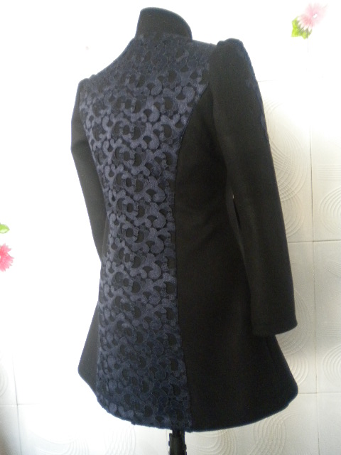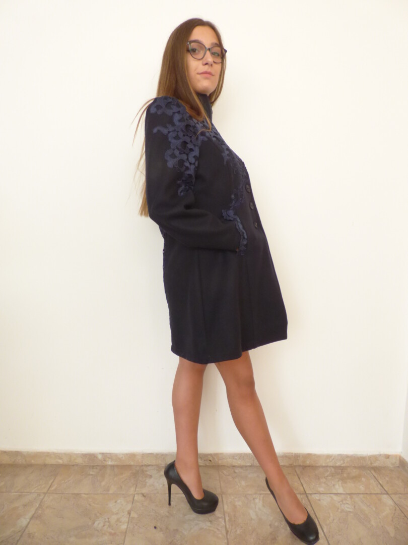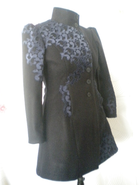Елегантно дамско палто с дантела ,изработено от вълнен текстил, дантела и хастар.